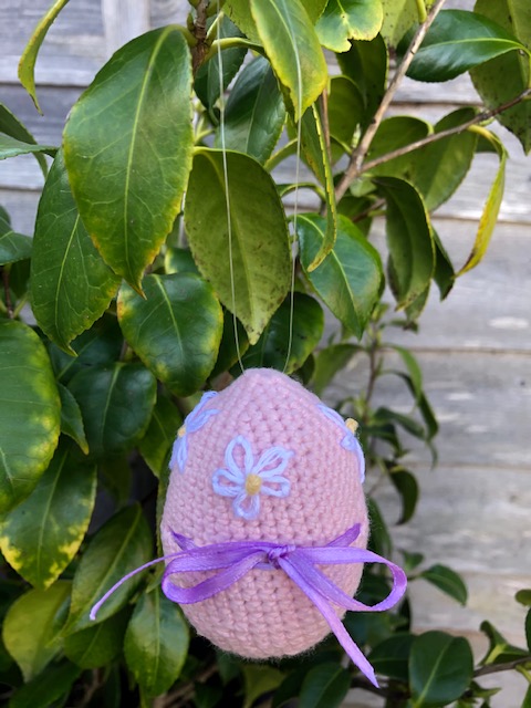 Pink and Blue Easter Eggs with embroidered Daisies pattern by @alistar_toys (I did adapt this pattern a little). Yarn used: Hobbii Rainbow 8/4